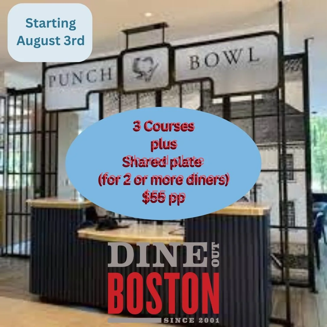 Join us starting August 4th for Dine Out Boston! 3 courses plus oe shared course for parties of 2 or more for $55 per person.